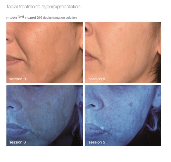 How dramatic the results are will vary depending on the darkness of the pigmentation, the overall condition of the skin, and the diligence of the client in continuing to apply the Cosmelan 2 at home. It is important to set realistic goals. However, Cosmelan provides both a short-term improvement and a long-term preventative measure to the problem of hyper-pigmentation.